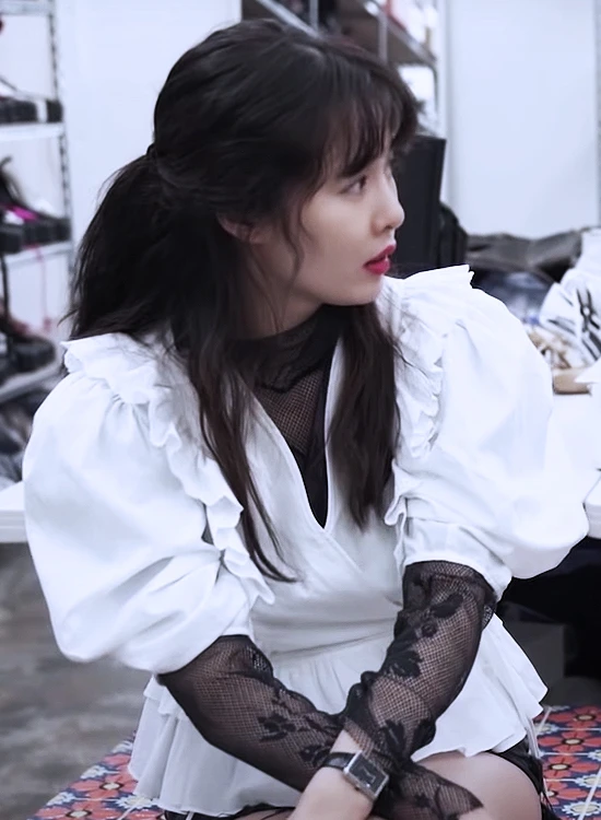 White Puff Sleeves Blouse With Black Collar | Wendy – Red Velvet